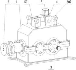5.如权利要求4所述一种风力涡轮机发电设备,其特征在于:所述检测记录机构还包括有:检测记录笔(604)、检测放卷轴(605)和检测收卷轴(606);所述检测记录笔(604)固定连接在检测触发杆(602)的上端;所述检测放卷轴(605)转动连接在发电齿轮箱体(1)的上方右侧;所述检测收卷轴(606)转动连接在发电齿轮箱体(1)的上方左侧,检测收卷轴(606)与检测驱动电机(5)的转轴同轴固定连接,检测收卷轴(606)和检测放卷轴(605)通过纸卷传动连接。