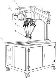 所述位置调节机构(1)用以调节所述视觉检测组件(3)和所述分拣驱动机构(4)作空间方位调节,所述分拣驱动机构(4)用以万向角度调节于电动真空吸盘(5),所述电动真空吸盘(5)对纸质文件进行吸附,并基于所述分拣驱动机构(4)和所述位置调节机构(1)的运动带动纸质文件运载至存放区域。