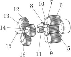 所述一级行星轮(6)的前侧固定安装有一级滚动轴承(7),所述一级滚动轴承(7)的外壁上装配有一级连接杆(8),所述一级连接杆(8)的右端固定安装有转杆(9),所述转杆(9)与一级太阳轮(5)通过一级轴承(10)相连接,所述转杆(9)的前端固定安装有二级太阳轮(11),所述二级太阳轮(11)的前侧装配有二级轴承(16),所述二级轴承(16)的内壁上套装有输出转杆(15)。