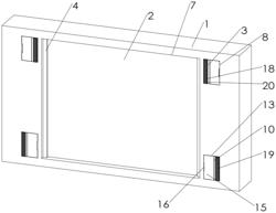 3.根据权利要求2所述的一种汽车室内氛围灯,其特征在于:所述隐形机构包括四组铰接杆(14)和四组隐形板(15),四组隐形板(15)分别安装在两组第一滑钮(3)的外端前侧和两组第二滑钮(10)的内端前侧,四组铰接杆(14)分别安装在上侧两组隐形板(15)的内端和下侧两组隐形板(15)的外端,两组第一滑钮(3)的外端前侧和两组第二滑钮(10)的内端前侧均设置有铰接孔,四组铰接杆(14)分别与四组铰接孔转动连接,四组隐形板(15)分别与两组第一方槽(8)和两组第二方槽(13)滑动连接,上侧两组隐形板(15)的外端前侧和下侧两组隐形板(15)的内端前侧均设置有凹槽(16)。