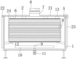 4.根据权利要求3所述的一种精铁铸件加工淬火装置,其特征在于:所述托料箱(24)的两侧内壁均开设有卡槽,隔板(4)的两侧外壁均固定安装有卡条(5),卡条(5)卡接安装于卡槽内。