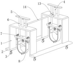 6.根据权利要求1所述的一种建筑工程用管道铺设装置,其特征在于:所述固定框架(1)的顶部固定有凸块(13)且凸块(13)之间固定有加固杆(14)。