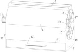 1.一种色母粒干燥装置,包括干燥桶(1);其特征在于:所述干燥桶(1)侧壁固接有电机(11);所述电机(11)输出端固接有第一支撑轴(12);所述第一支撑轴(12)贯穿干燥桶(1)且设置在干燥桶(1)中部;所述第一支撑轴(12)中部固接有搅拌叶(13);所述搅拌叶(13)中部固接有分料杆(14);所述分料杆(14)为多组且均匀分布在搅拌叶(13)中部;所述第一支撑轴(12)中部固接有阻挡板(15);所述阻挡板(15)设置在第一支撑轴(12)远离电机(11)一端;所述阻挡板(15)中部开设有通风孔(16);所述通风孔(16)为多组且均匀分布;所述通风孔(16)孔径小于色母粒的直径;所述第一支撑轴(12)端部固接有扇叶(17);所述扇叶(17)为多组且环形分布;所述干燥桶(1)靠近扇叶(17)一侧侧壁开设有通气槽(18)。