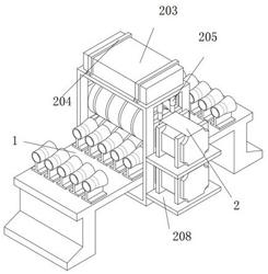 多个安装板,每个安装板顶端均固定连接有多个限位套筒,每个限位套筒一端孔径大于另一端,限位架内壁靠近底端两边均固定连接于多个安装板两边一侧,其中一个旋转辊设置于多个安装板之间,另一个旋转辊设置于安装板顶端,多个旋转辊之间和安装板之间为垂直设置,每个限位套筒一端中心点水平设置于多个夹送套表面的成型槽之间,每个安装板底端靠近一侧均固定连接有支撑脚。