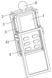 3.根据权利要求1所述的一种防护性能优良的环保噪声监测用噪声检测仪,其特征在于:所述滑盖(4)上设置有透明亚克力板,滑盖(4)的两侧对称连接有滑块(41),滑块(41)并排的两个为一组,且滑块(41)的底端活动插接在滑槽(3)的内部,且滑块(41)能够在滑槽(3)内上下以及左右活动而不能偏转,滑盖(4)的顶部连接有卡块(42),卡块(42)为“凹”形结构。