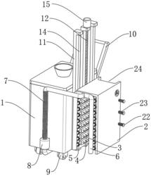 7.如权利要求5所述的道路桥梁护栏清洗养护装置,其特征在于,所述匚型框(2)的一侧活动连接有限位柱(22),所述限位柱(22)的一端与安装框(16)固定连接,所述限位柱(22)的外侧设置有弹簧(23)。