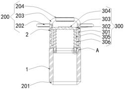 1.一种园林绿化施工用的苗木移栽设备,包括移栽筒(1),其特征在于:所述移栽筒(1)的顶部固定连接有两个连接柱(2),所述连接柱(2)的外侧安装有手持组件(200),所述移栽筒(1)的内部安装有对苗木进行移栽的移栽组件(300);