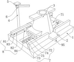 5.根据权利要求3所述的混凝土塌落度检测装置,其特征在于:两个所述方块(92)的一侧均开设有方槽(94),两个所述方槽(94)的内壁均卡接设置有方柱(95),两个所述方柱(95)的外壁均与围板(91)的内壁贯穿套设连接,两个所述方柱(95)的一侧均与凹槽(93)的内壁一侧贯穿套设连接。