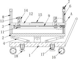 4.根据权利要求1所述的机电设备安装用平衡设备,其特征在于,所述支撑板的底部固定安装有两个固定板和第二电机,两个所述固定板上转动安装有双向螺杆,所述第二电机的输出轴与所述双向螺杆的一端固定连接,所述支撑板的底部滑动安装有两个滑条,两个所述滑条均与所述双向螺杆螺纹连接。
