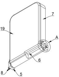 所述限位栓(802)的另一端固定安装有拉簧(803),所述拉簧(803)的另一度与所述转动板(5)的一侧固定连接,所述坐板(4)的上端和所述靠背(7)的一侧均固定安装有透气软垫(19)。