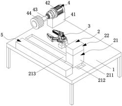 2.如权利要求1所述金属铸件毛刺清理装置,其特征在于:所述第一支撑组件(21)包括有第一支撑块(211),所述第一支撑块(211)的底部固定连接有第一滑块(212),所述支撑架(1)的顶部开设有第一滑槽(213),所述第一滑块(212)远离第一支撑块(211)的一侧延伸至第一滑槽(213)的内腔并与第一滑槽(213)的内腔滑动连接。