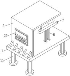 3.根据权利要求1所述的一种高精度裁剪装置,其特征在于:所述底座(1)的底部靠近四周处均固定安装有支撑腿(11),L形板(2)的一侧靠近底部处固定安装有控制面板(21),L形板(2)的一侧底部处固定安装有若干个三角块A(22),L形板(2)的内腔顶部处固定安装有若干个三角块B(23)。