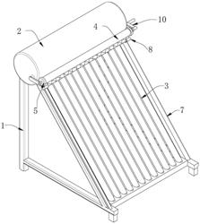 1.一种太阳能混合利用的太阳能热水器,包括主体框架(1),所述主体框架(1)顶部设有保温水箱(2),所述主体框架(1)内设有若干组真空管(3),若干组所述真空管(3)的一端均穿过保温水箱(2)并位于保温水箱(2)内,所述主体框架(1)靠近若干组真空管(3)的一侧固定连接有反射板,所述反射板位于若干组所述真空管(3)的下方;