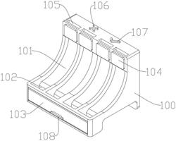 5.根据权利要求4所述的一种儿童垃圾分类益智玩具,其特征在于:所述玩具本体(100)设有四条与每个所述识别孔(105)连通的滑道(101),且所述玩具本体(100)设有四个与所述滑道(101)前后对齐的收集槽(102),所述玩具本体(100)转动连接有门板(103),所述门板(103)前端面固定连接有把手(108)。