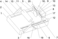 4.根据权利要求1所述的一种木质包装箱生产用的切割机构,其特征在于:位于第二旋转电机(13)一端的底座(1)顶部安装有限位板(18),第二安装槽(3)外侧的底座(1)顶部设有刻度尺(19)。