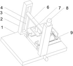 3.根据权利要求1所述的一种木质包装箱生产加工装置,其特征在于:位于切割组件一端的底座(1)顶部设有下凹形成的调节槽(21),其中一条调节槽(21)内安装有调节轴(22),其中一个安装座(9)底部活动安装在调节轴(22)上,另一条调节槽(21)内安装有调节螺杆(23),另一个安装座(9)底部活动安装在调节螺杆(23)上,远离定位组件一端的调节螺杆(23)穿过底座(1)与调节电机(24)连接,位于调节电机(24)一端的底座(1)顶部固定有限位板(25),调节槽(21)外侧的底座(1)顶部设有刻度尺(26)。