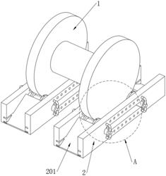 2.根据权利要求1所述的一种建筑电气线路铺设装置,其特征在于:两个所述回转台(2)通过各自内壁开设的滑动槽二(211)对称滑动连接有垫板(201)。