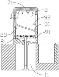 4.根据权利要求3所述的一种石灰石筛分破碎装置,其特征在于,所述升降组件a包括滑动设置在腔体a(21)内的门板a(81),所述腔体a(21)连接至破碎腔(3)下端部,所述门板a(81)上端部连接钢丝绳(82),所述腔体a(21)上端部转动设置有滚轮(83),所述钢丝绳(82)端部设置有滑块(84),所述滑块(84)滑动设置在料箱(2)内壁上。