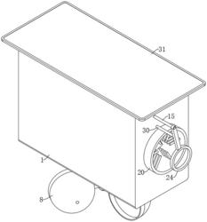 其中,所述横轴(15)的两端均转动连接有环形板(17),所述外箱(1)的两侧内壁均固定连接有磁铁(25),其中一侧的所述环形板(17)吸附在所述磁铁(25)上。