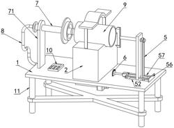 其中:所述传动组件(6)包括第二转动轴(61)、第二矩形柱(62)、第一锥齿轮(65)、第二锥齿轮(64)和传动带(69),所述第二转动轴(61)贯穿移动板(51)的底端转动设置,所述第一转动轴(58)和第二转动轴(61)的外端均固定设置有皮带轮(68),两个所述皮带轮(68)之间通过传动带(69)传动,所述第二转动轴(61)的一端设置有第二矩形槽,所述第二矩形柱(62)滑动设置在第二矩形槽内,所述第二矩形柱(62)的外端固定设置有第三圆杆(63),所述第二锥齿轮(64)固定设置在第三圆杆(63)的外端,所述第一锥齿轮(65)固定套设在第一轴杆(42)的外侧,所述第二锥齿轮(64)与第一锥齿轮(65)啮合连接,所述减速箱(53)的输入端固定设置有圆柱(66),所述圆柱(66)和第三圆杆(63)上均固定设置有第三齿轮(67),两个所述第三齿轮(67)啮合连接。