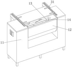 5.根据权利要求1所述的一种食品加工用自动拌馅装置,其特征在于,所述移动组件包括连接于箱盖(16)顶面两侧的两组横杆(31)、设置于箱体(11)后侧上方的一组方形杆(32)、设置于箱体(11)顶面及方形杆(32)顶面的移动槽(33)、套接于移动槽(33)内的移动块(34)。