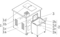 1.一种菜品处理的自动切菜装置,包括自动切菜机(1)和收集组件(2),其特征在于:所述自动切菜机(1)包括机体(1a)、控制器(1b)、出料口(1c)和进料口盖板(1d),所述控制器(1b)的底部与机体(1a)顶部前侧的左侧固定连接,所述出料口(1c)开设于机体(1a)内部的前侧,所述进料口盖板(1d)的表面与机体(1a)的顶部插接连接,所述收集组件(2)包括移动车(2a)、拉杆(2b)、两个把手(2c)和收集盒(2d),所述收集盒(2d)的表面与移动车(2a)的内部插接连接,所述拉杆(2b)的后侧与移动车(2a)的前侧固定连接,两个把手(2c)的底部分别与收集盒(2d)顶部的左侧和右侧固定连接;