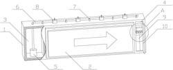 1.一种楼道应急疏散引导装置,包括外壳(1)、引导架(2)、蓄水腔(3)、暂存腔(4)、水泵(5)、输液管(6)、卡扣(7)、喷头(8)、应急架(9)和箱门(10),其特征在于:所述外壳(1)固定在楼道内部,且外壳(1)的内部固定有引导架(2);所述外壳(1)的内部分别开设有蓄水腔(3)和暂存腔(4),其中蓄水腔(3)的内部固定有水泵(5),该水泵(5)的输出端固定有输液管(6);所述输液管(6)固定在卡扣(7)的内部,其中卡扣(7)固定在外壳(1)的上侧面,且输液管(6)的中部固定有若干所述喷头(8);所述暂存腔(4)的内部固定有应急架(9),且暂存腔(4)的一侧设置有箱门(10),该箱门(10)与外壳(1)旋转相连。