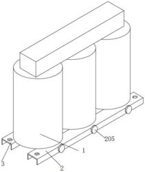 6.根据权利要求1所述的一种干式变压器承托支架,其特征在于:所述变压器主体(1)的底部设有与定位柱(206)相匹配的定位孔三。
