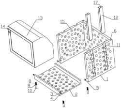 所述支架(1)顶部均匀设有插口(6),所述支架(1)顶部设有位置数量对应所述插口(6)的柱孔(7),所述柱孔(7)内底部固定安装有弹簧(8),所述弹簧(8)的另一端安装有安装盘(9),所述安装盘(9)的中心位置螺纹连接有规格尺寸匹配所述插口(6)的插销(10);