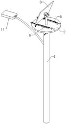 设置于托盘上方的主杆,所述主杆的顶部设有驱动件,所述驱动件的输出端设有太阳能板,所述驱动件能够驱动太阳能板转动,所述太阳能板转动连接于主杆,所述太阳能板的一侧设有竖板,所述竖板内滑动连接有推动杆。