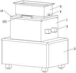 1.一种用于基础建筑工程的边坡加固结构,包括第一箱体(1),其特征在于:所述第一箱体(1)的下表面连接有第二箱体(2),所述第一箱体(1)的上表面可拆卸设有盖板(11),所述盖板(11)的上表面固定设有下料板(5),所述第一箱体(1)上连接有均匀搅拌清洁组件(3),所述下料板(5)上连接有振动筛选组件(4);