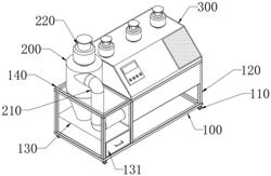 1.一种粉尘环境检测装置,包括:底架组件、吸尘组件以及检测组件(300),其特征在于,所述底架组件包括底板(100)、万向轮(110)、框架(140)以及支撑杆(120),所述底板(100)的上侧表面安装有支撑杆(120),所述支撑杆(120)的上端安装有框架(140);
