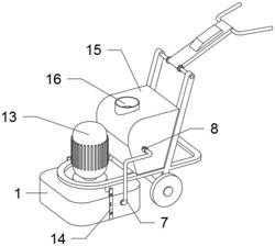 3.根据权利要求2所述的一种可测量石材平整的石材研磨机,其特征在于:所述第二阀门(11)的顶部固定连接有手柄(12),所述主机(1)的顶部固定连接有电机(13),所述主机(1)的外壁固定连接有水平尺(14),所述角阀管(8)远离水管(7)的一端固定连接有水箱(15),所述水箱(15)的顶部固定连接有进水口(16)。