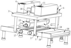 6.根据权利要求3所述的一种木质包装箱生产用抛光设备,其特征在于:所述辅助辊(19)通过轴承与所述工作台(1)构成转动连接,且所述辅助辊(19)沿着所述工作台(1)的竖直中心线对称分布。