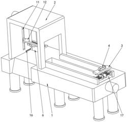 4.根据权利要求3所述的一种木质包装箱生产木材切割设备,其特征在于:驱动组件包括第一连接块(7)、第二连接杆(8)、第二连接块(9)、第一T型滑块(10)、第一T型滑槽(11)、第二T型滑块(15)和第二T型滑槽(16),所述第一连接块(7)固定设置于推板(6)侧面,所述第二连接杆(8)铰接于第一连接块(7)顶面,所述第二连接块(9)铰接于第二连接杆(8)的另一端,所述第一T型滑块(10)固定设置于第二连接块(9)侧面,所述第一T型滑槽(11)设置于固定框(2)内侧靠近第一T型滑块(10)的一侧,所述第二T型滑块(15)固定设置于第一连接块(7)侧面,所述第二T型滑槽(16)设置于固定框(2)内侧靠近第二T型滑块(15)的一侧。
