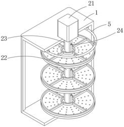 所述电机(21)的输出轴键连接有转杆(22),所述转杆(22)的底端与防护箱(1)内腔的底部转动连接,所述转杆(22)的两侧均固定安装有连接条(23),所述连接条(23)的外侧等距间隔开设有凹槽(24);