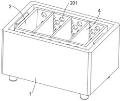 4.根据权利要求1所述的一种卤水分离装置,其特征在于,所述滤框(2)内壁上连接有一组定位框(401),所述隔板(4)插接设置于定位框(401)中,所述滤框(2)与隔板(4)位置相对应的侧壁上开设有定位槽(402),所述隔板(4)侧壁延伸至定位槽(402)中。