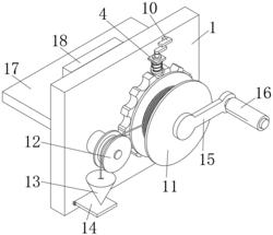 5.根据权利要求4所述的一种建筑施工用铅锤测量装置,其特征在于,所述直杆(2)的前端贯穿绳轮(11)的前侧并通过螺栓固定连接有摇杆(15),所述摇杆(15)的前侧转动连接有套筒(16)。