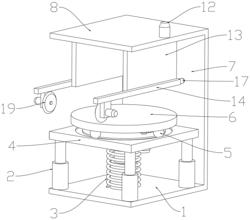 4.根据权利要求1所述的一种石材原料切割装置,其特征在于:所述传动机构(12)包括固定连接于顶板(8)上部一侧的电机二(12.1),所述顶板(8)一侧内部对应电机二(12.1)处开设有放置仓(12.2),所述电机二(12.1)下端延伸至防放置仓(12.2)内部且固定连接有齿轮三(12.3),所述齿轮三(12.3)一侧啮合有齿轮四(12.4),所述齿轮四(12.4)一侧与丝杆一(11)一端固定连接。