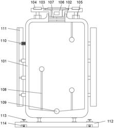 4.根据权利要求1所述的一种危化品储料罐,其特征在于,所述注料口(102)的内壁上固定安装有防逆瓣膜(107),所述防逆瓣膜(107)的数量为两个。