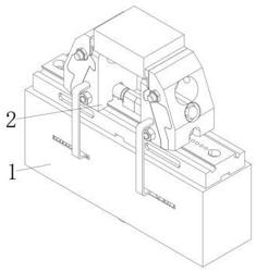 自动限位机构(2),所述自动限位机构(2)固定连接在夹具机构(1)的底部,所述自动限位机构(2)包括自动限位盒(21),所述自动限位盒(21)内腔的底部固定连接有马达组件(22),所述马达组件(22)的输出端固定连接有斜齿轮一(23),所述自动限位盒(21)的内部横向通过轴承活动连接有正反牙丝杆(24),所述正反牙丝杆(24)的表面套接有斜齿轮二(25),所述斜齿轮二(25)的底部与斜齿轮一(23)啮合,所述正反牙丝杆(24)表面的两侧均螺纹连接有螺块(26),所述螺块(26)的正面固定连接有凹板组件(27),所述凹板组件(27)远离螺块(26)的一侧贯穿至自动限位盒(21)的外侧并与夹具机构(1)固定连接。