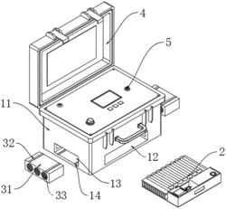 1.一种电网故障检测装置,包括上盖板(4)和插接口(5),其特征在于:所述上盖板(4)一端与检测箱(1)转动连接,所述检测箱(1)上端设有插接口(5),所述检测箱(1)底端中间安装有液冷机构(2),所述检测箱(1)底端两侧安装有风冷机构(3);