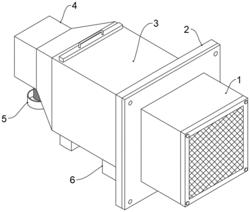 所述通风组件(3)包括外部防护网(31)、驱动电机(32)、传动轴(33)、通风扇叶(34)和空气过滤网板(35),所述通风壳(1)右端面安装有外部防护网(31),所述通风壳(1)内部安装有驱动电机(32),所述驱动电机(32)左端连接有传动轴(33),所述传动轴(33)左端安装有通风扇叶(34),所述通风壳(1)内部左侧插装有空气过滤网板(35);