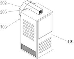 1.一种发电设备的电力分配管理装置,包括电力管理装置(1)和通风组件(2),其特征在于:所述电力管理装置(1)包括柜体(101)、支撑板(102)和控制器(103),所述支撑板(102)的左右两侧分别与柜体(101)内部的左右两侧固定连接,所述控制器(103)的底部与支撑板(102)的顶部固定连接,所述通风组件(2)包括连通盒(201)、连接件(202)、通风管(203)和风机(204),所述连通盒(201)的前侧与柜体(101)的后侧固定连通,所述连接件(202)的底部与连通盒(201)的顶部固定连通,所述通风管(203)的底部与柜体(101)的顶部固定连接,所述通风管(203)的后侧与连接件(202)的前侧固定连通,所述风机(204)的表面与通风管(203)的内部固定连接;