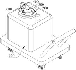 其特征在于:所述转动台(200)的顶部设置有辅助组件(600),所述辅助组件(600)包括固定杆(601),所述设备本体(100)的顶部固定连接有齿圈(602),所述转动台(200)的顶部转动连接有动力齿轮(603),所述动力齿轮(603)的顶部固定连接有传动杆(604),所述传动杆(604)的顶部固定连接有动力锥齿轮(605),所述固定杆(601)的侧面转动连接有受力锥齿轮(606),所述受力锥齿轮(606)的侧面固定连接有转动筒(607),所述转动筒(607)的外侧装配有传送带(608)。