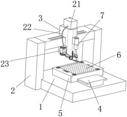 4.根据权利要求1所述的电子元件加工用点胶装置,其特征在于:所述加压泵(23)的抽液端通过连接管(22)与胶液箱(21)相连通,所述加压泵(23)的输液端通过连接管(22)与点胶头(8)相连通。