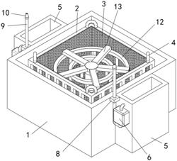 4.根据权利要求1或2所述的一种用于白酒生产的过滤装置,其特征在于:所述喷射机构包括固定块(8)、万向管(9)和喷头(10),固定块(8)与过滤箱(5)靠近回水泵(6)的一侧固定连接,回水泵(6)的出水端通过水管与固定块(8)的底面固定连接并连通,万向管(9)与固定块(8)的上表面固定连接并连通,万向管(9)远离固定块(8)的一端与喷头(10)固定连接并连通。