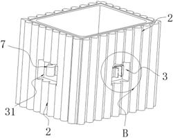 5.根据权利要求1所述的一种防撞型物流运输箱,其特征在于:所述第一凹槽(3)和第二凹槽(31)分别位于运输箱(1)侧壁的中部,且第一凹槽(3)所处侧壁均与另一第一凹槽(3)所处侧壁和第二凹槽(31)所处侧壁相邻。