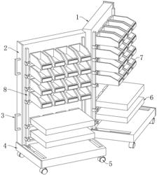 6.根据权利要求1-5任意一项所述的一种零部件销售用展示架,其特征在于:所述放置板(6)与展示盒(7)的后端安装有卡套(12),所述展示盒(7)的前端安装有标识盒(13)。