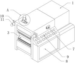 7.根据权利要求1所述的书刊印刷机,其特征在于:所述书刊印刷机主体(1)的左右两侧均固定连接有支撑块(10),多个所述支撑块(10)的正面均固定连接有照明灯(11)。